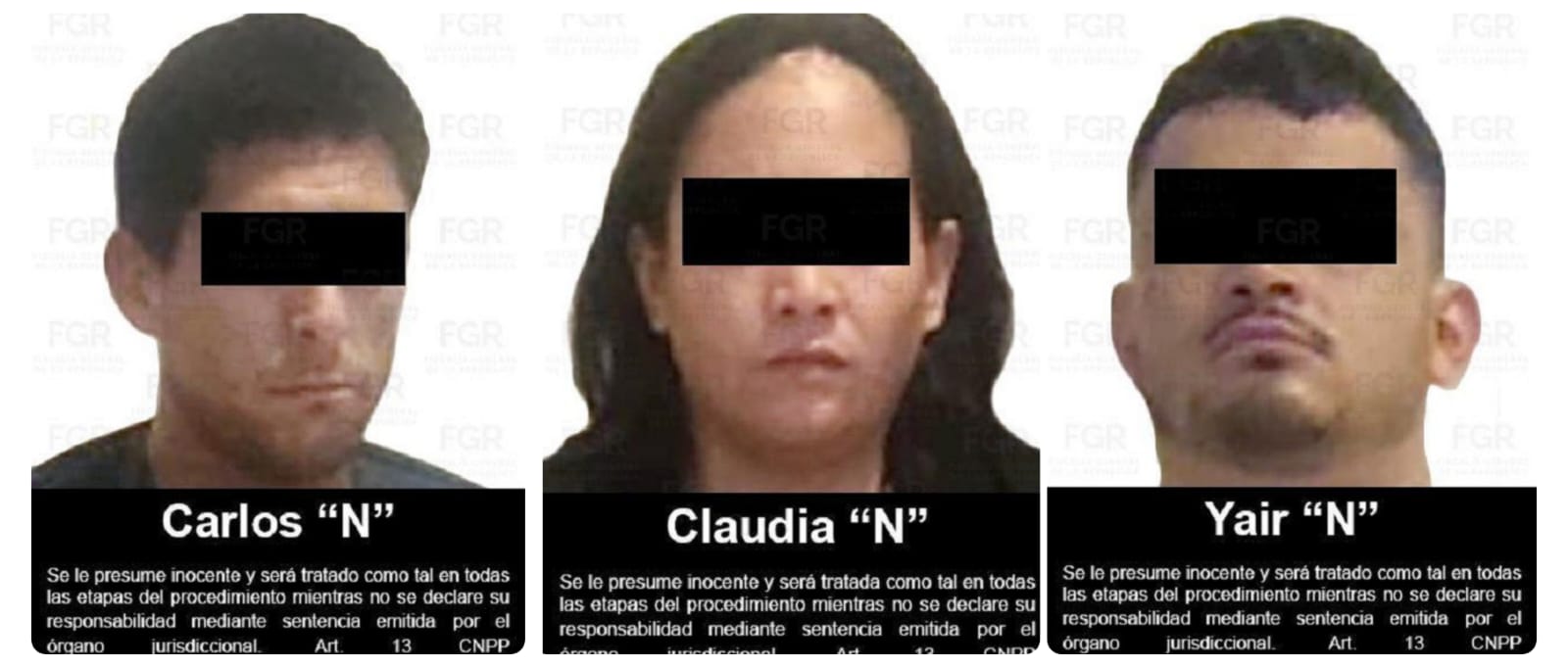 La Fiscalía General de la República (FGR) presentó los datos de prueba necesarios para obtener vinculación a proceso en contra de Carlos «N», Yair «N» y Claudia «N», por su posible participación en el delito de contra la salud en la modalidad de posesión con fines de comercio en su variante de venta de fentanilo.