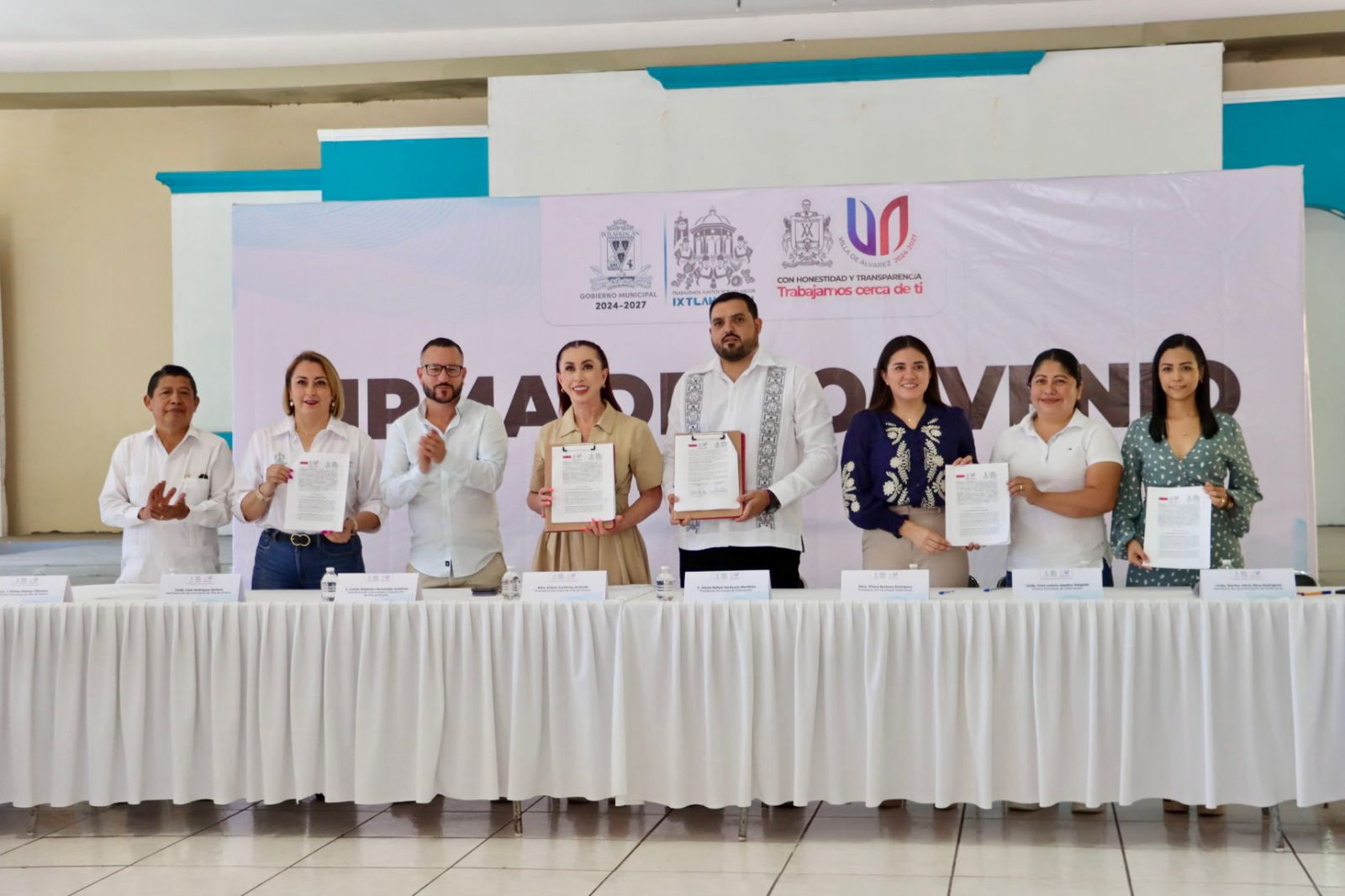 A la firma del Convenio de Colaboración entre los ayuntamientos de Ixtlahuacán y Villa de Álvarez asistieron regidoras, regidores y funcionarios y funcionarias de ambos municipios, y los titulares de los patronatos del DIF, por Ixtlahuacán, Tiharé Barbosa Rodríguez, y por Villa de Álvarez, Carlos Alejandro Rubalcaba Gutiérrez.