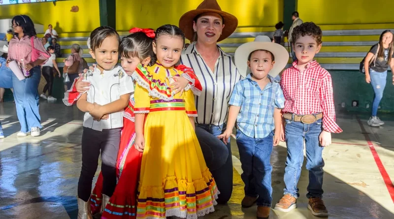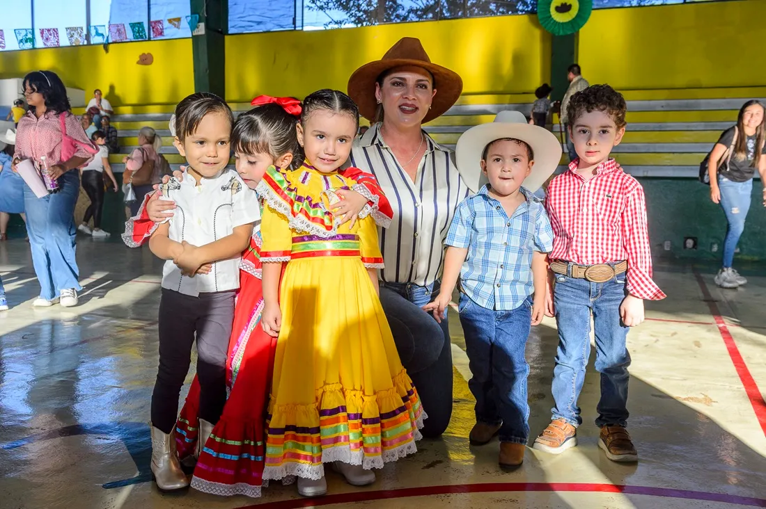 Para esta celebración, los niños y las niñas lucieron atuendos tradicionales: pantalones de mezclilla, camisas a cuadros y sombreros, siguiendo la estética característica de las festividades charrotaurinas en Villa de Álvarez. El lugar también se adornó con motivos festivos, haciendo referencia a la icónica Petatera.