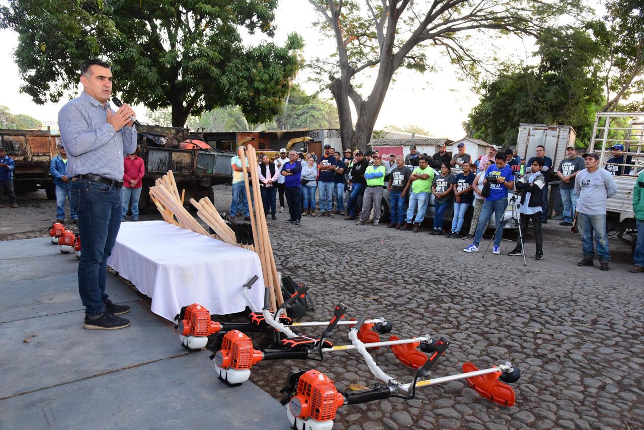 En compañía de la directora del área, Ana Escobosa Galindo, la representación sindical y de funcionarios municipales, el alcalde señaló que con esta entrega, que incluye desbrozadoras, palas, rastrillos y otros implementos, se busca optimizar las labores de mantenimiento y embellecimiento de los espacios públicos, mejorando así la calidad de vida de los colimenses.