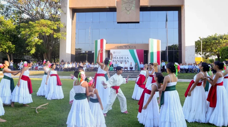 En el marco del Día de la Bandera, el Rector de la Universidad de Colima, Christian Jorge Torres Ortiz Zermeño, encabezó una ceremonia cívica en la explanada de rectoría, donde resaltó la importancia de este símbolo patrio para la formación ciudadana de los y las estudiantes.