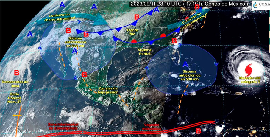 Para este martes 12 de septiembre, el organismo de la Comisión Nacional del Agua (Conagua) indicó que el estado de Colima registrará temperaturas máximas de hasta 40 grados Celsius, al igual que en Jalisco, Michoacán, Guerrero, Oaxaca, Chiapas, Baja California Sur, Chihuahua, Coahuila, Nuevo León, Sinaloa, Durango, Nayarit, Veracruz, Tabasco, Campeche, Yucatán y Quintana Roo.