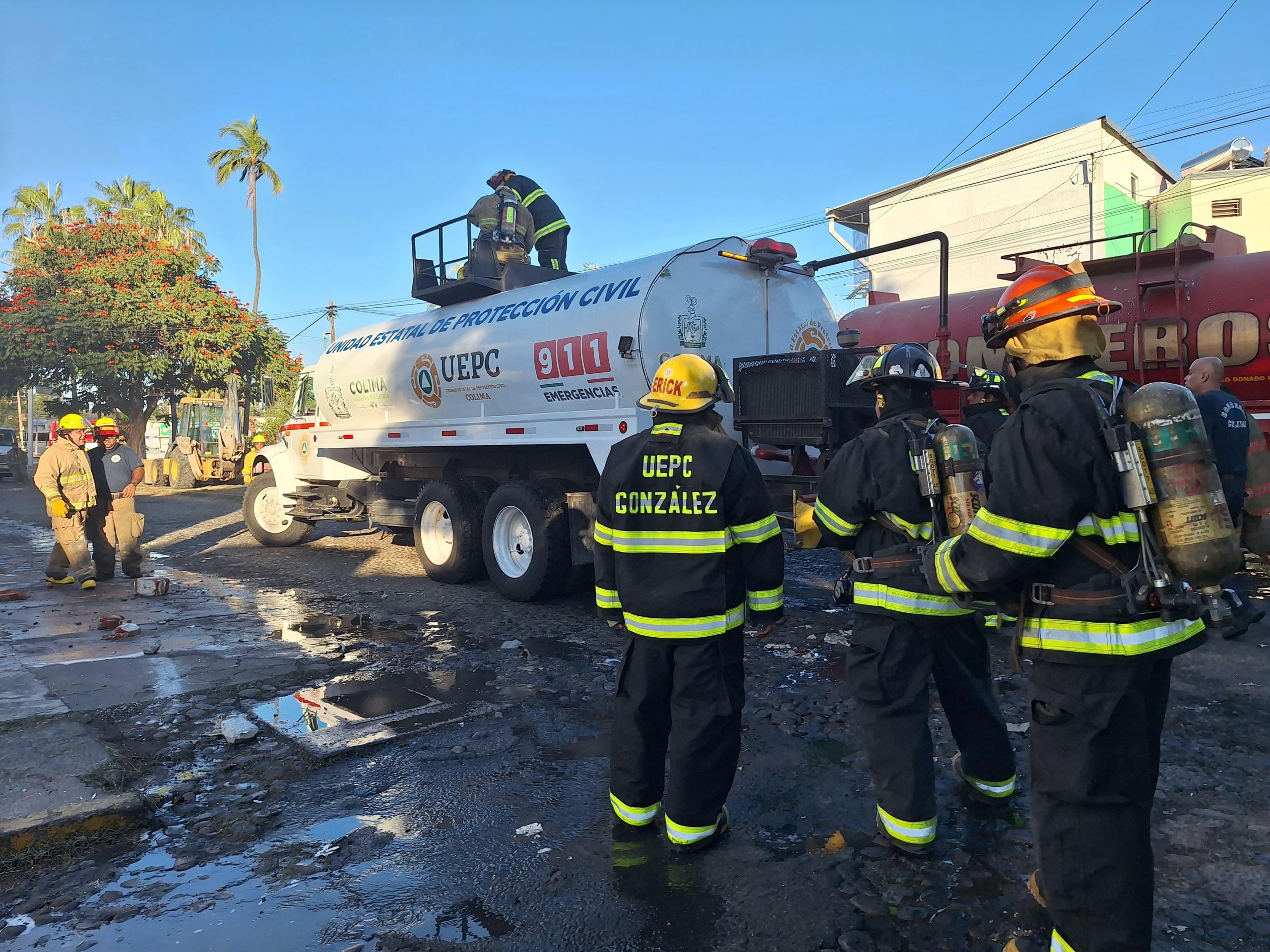 En el lugar trabajaron de manera conjunta cerca de 50 elementos, entre oficiales de la UEPC, Bomberos Voluntarios de Colima y del municipio de Cuauhtémoc, autoridades de Seguridad Pública (SSP) y paramédicos de Cruz Roja y CRUM, estos últimos brindando atención médica al personal que realizaba maniobras de mitigación.