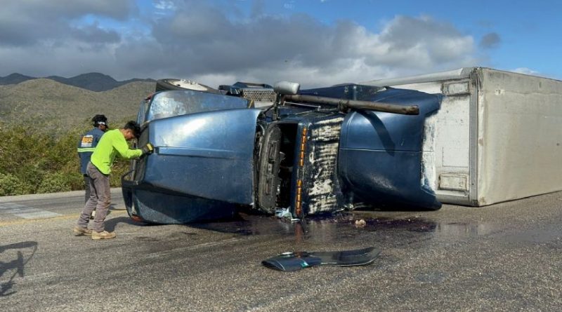 En esta vía es muy común ver estas escenas donde las gigantescas unidades se encuentran derribadas sobre el asfalto, pero a pesar de lo aparatoso que resulta la imagen, los conductores resultan ilesos, debido a que no conducen a exceso de velocidad tratando de sortear las fuertes rachas de viento.