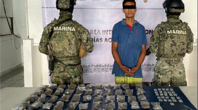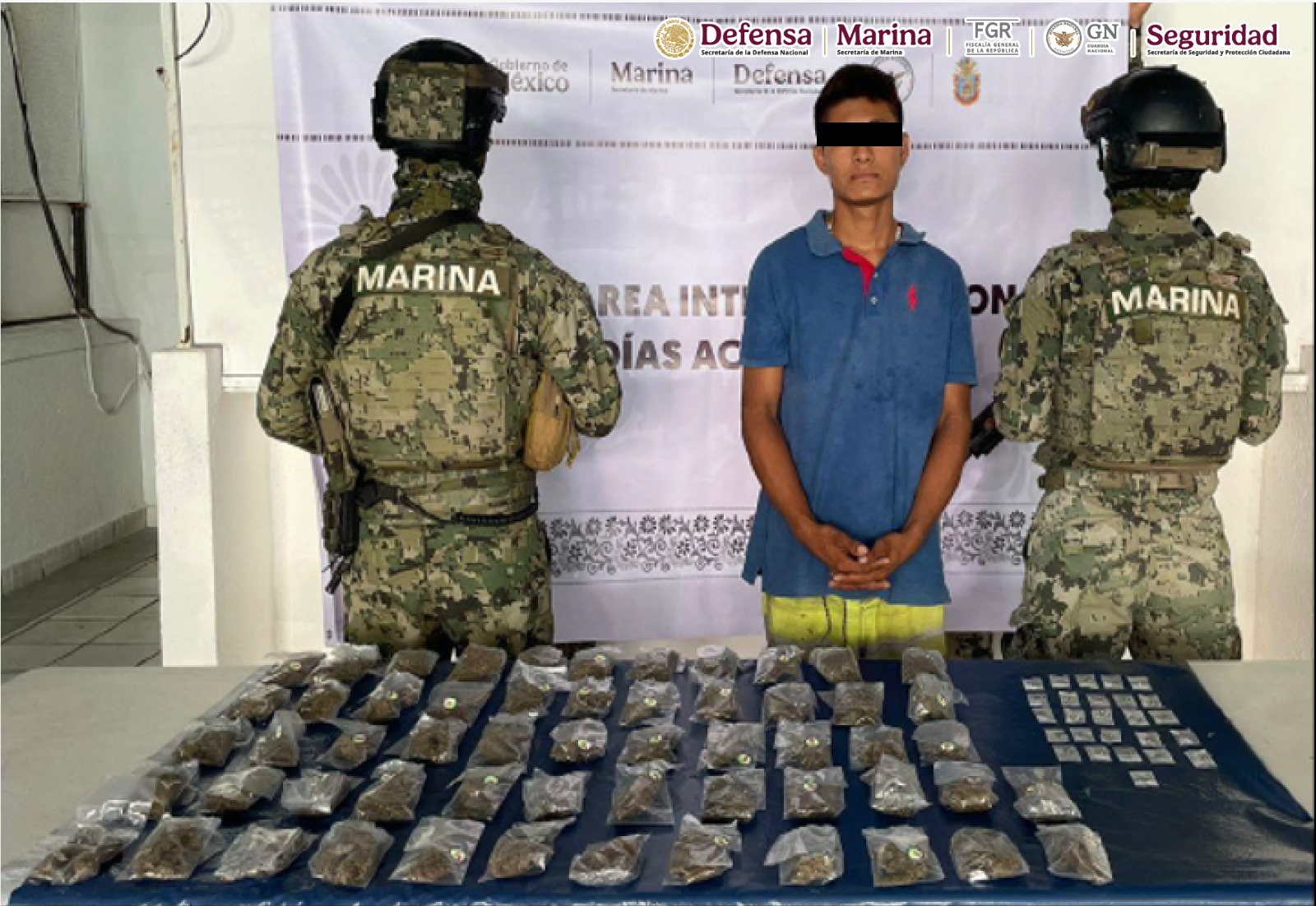 – Derivado de la operación: “Fuerza de Tarea Interinstitucional 100 días Acapulco”, la Policía Estatal en coordinación con la Secretaría de Marina (Semar) realizaron la detención de una persona que presuntamente formaba parte de una organización delictiva, además se aseguraron aparentes drogas como: cristal y marihuana.