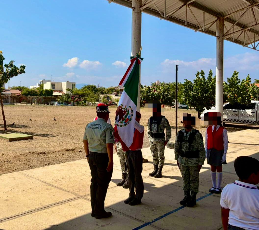 Como parte de las acciones de proximidad social y fomento a los valores cívicos, personal de la Guardia Nacional, adscrito a la Coordinación Estatal Colima, participó en la ceremonia de Honores a la Bandera en la escuela primaria ‘Juan Escutia’, ubicada en el municipio de Villa de Álvarez.