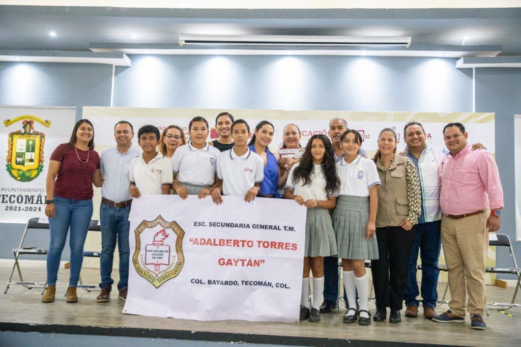 Gobernadora acompaña entrega de tarjetas ‘La Escuela es Nuestra’ en Tecomán