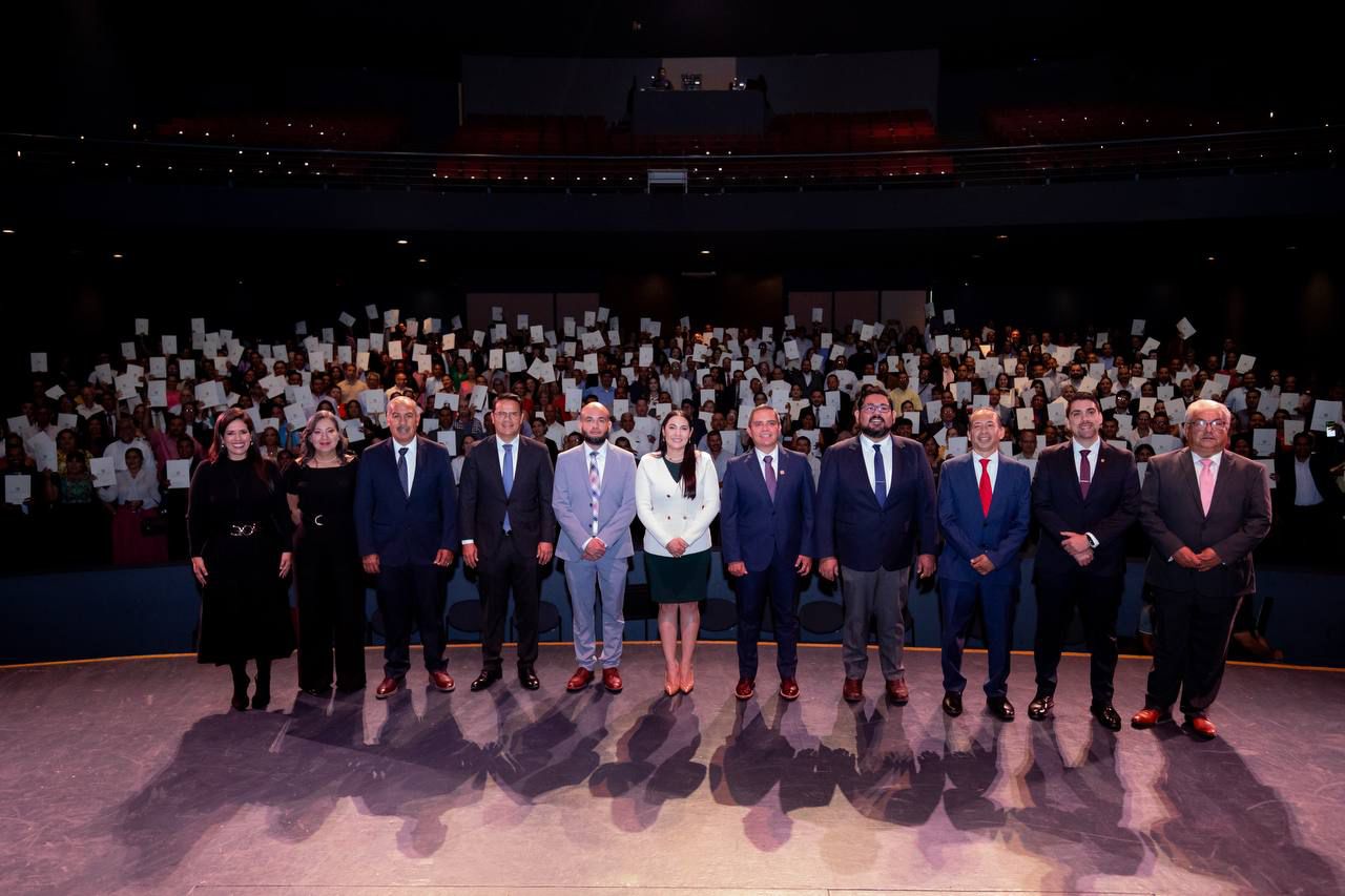 La gobernadora Indira Vizcaíno Silva atestiguó la entrega de preseas por quince, veinte y 25 años de servicio a la Universidad de Colima, así como reconocimientos a mejores docentes de esta casa de estudios, que encabezó el rector Christian Jorge Torres Ortiz Zermeño.
