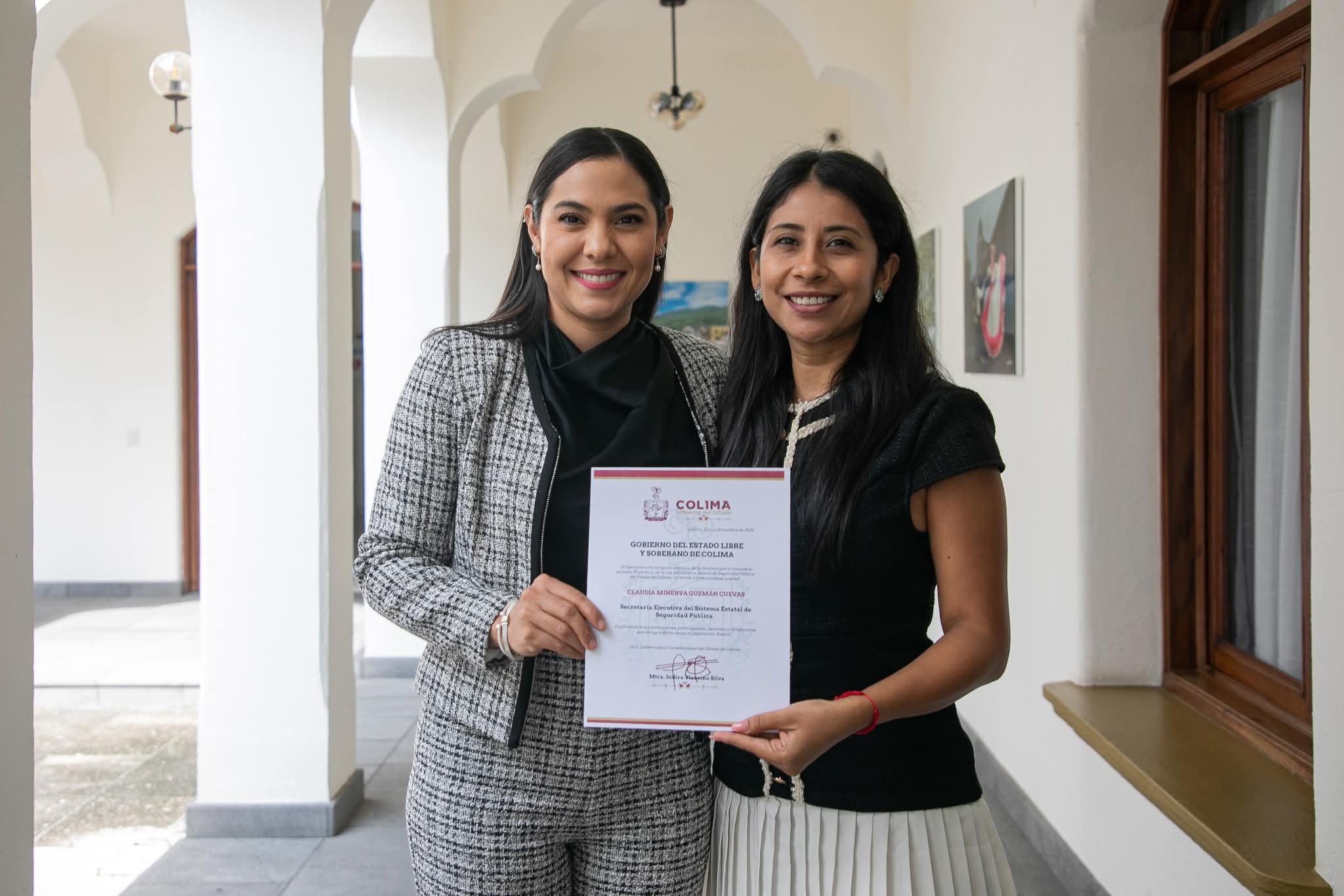 Este miércoles, la gobernadora Indira Vizcaíno Silva designó a Claudia Minerva Guzmán Cuevas como secretaria ejecutiva del Sistema Estatal de Seguridad Pública del Estado de Colima.