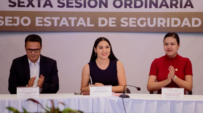 La gobernadora de Colima, Indira Vizcaíno Silva, presidió este viernes la sesión ordinaria del Consejo Estatal de Seguridad en la Sala de Convenciones del Complejo Administrativo; señaló que, en este rubro -que es tan importante para la población colimense-, su administración tiene plena disposición para respaldar a todos los municipios por igual.