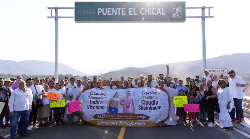 Gobernadora Indira Vizcaíno entregó y recorrió nuevo puente vehicular en El Chical en Coquimatlán