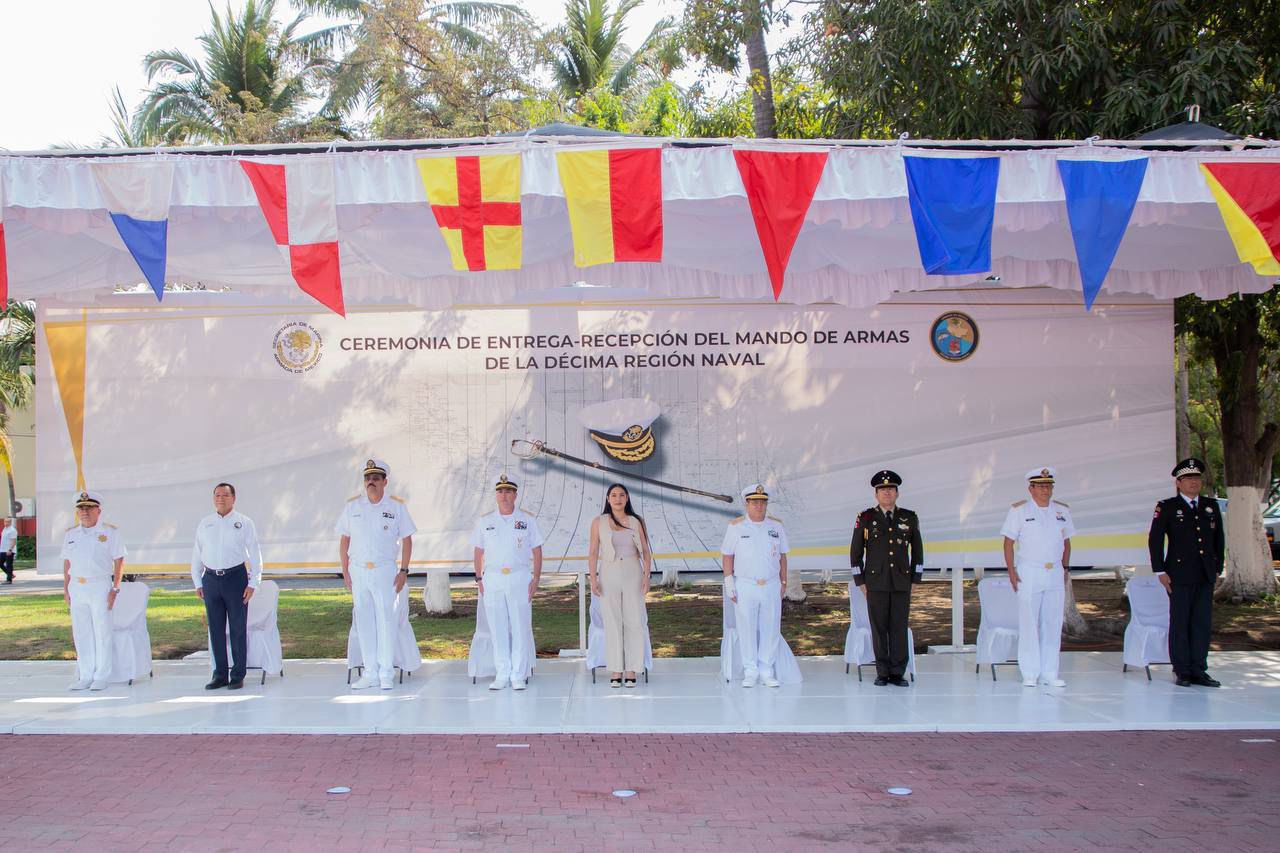 La gobernadora de Colima, Indira Vizcaíno Silva, asistió este viernes a la ceremonia de entrega-recepción del Mando de Armas en la Décima Región Naval en Manzanillo, donde el Vicealmirante Gabriel Alberto Báez López asumió el cargo de comandante de esta dependencia, que entregó su antecesor, el Vicealmirante César Mora Arenas.