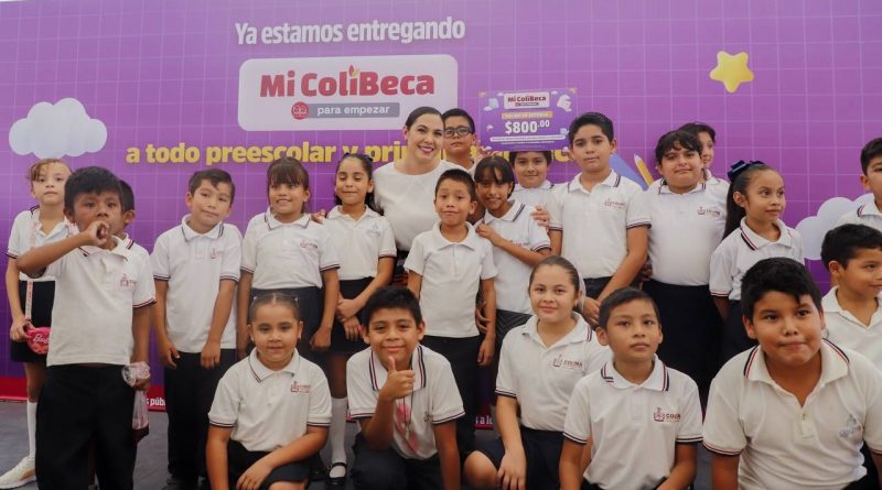 La gobernadora de Colima, Indira Vizcaíno Silva, concluyó este viernes la entrega de Mi ColiBeca para Empezar (800 pesos, correspondientes a los bimestres de septiembre-octubre y noviembre-diciembre) a 1,515 estudiantes de primarias del municipio de Tecomán, de casi 70 mil 400 niñas y niños que tendrán acceso a este beneficio en toda la entidad, con una inversión global de 140 millones de pesos.