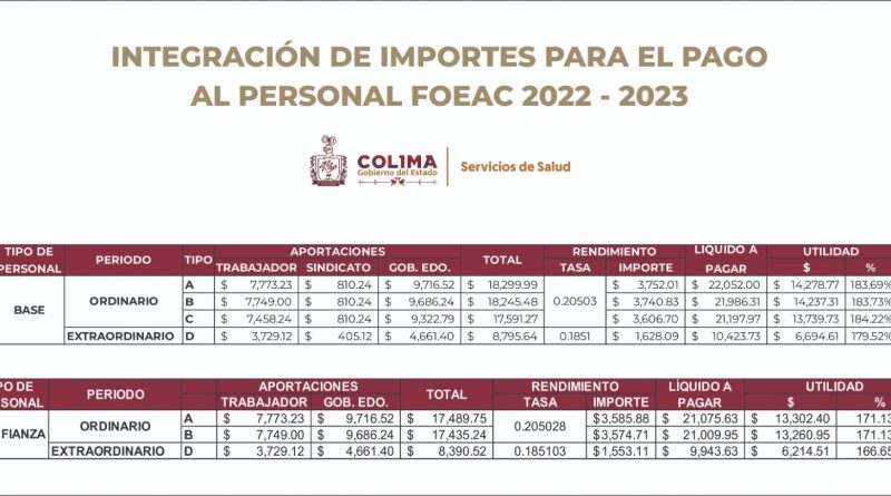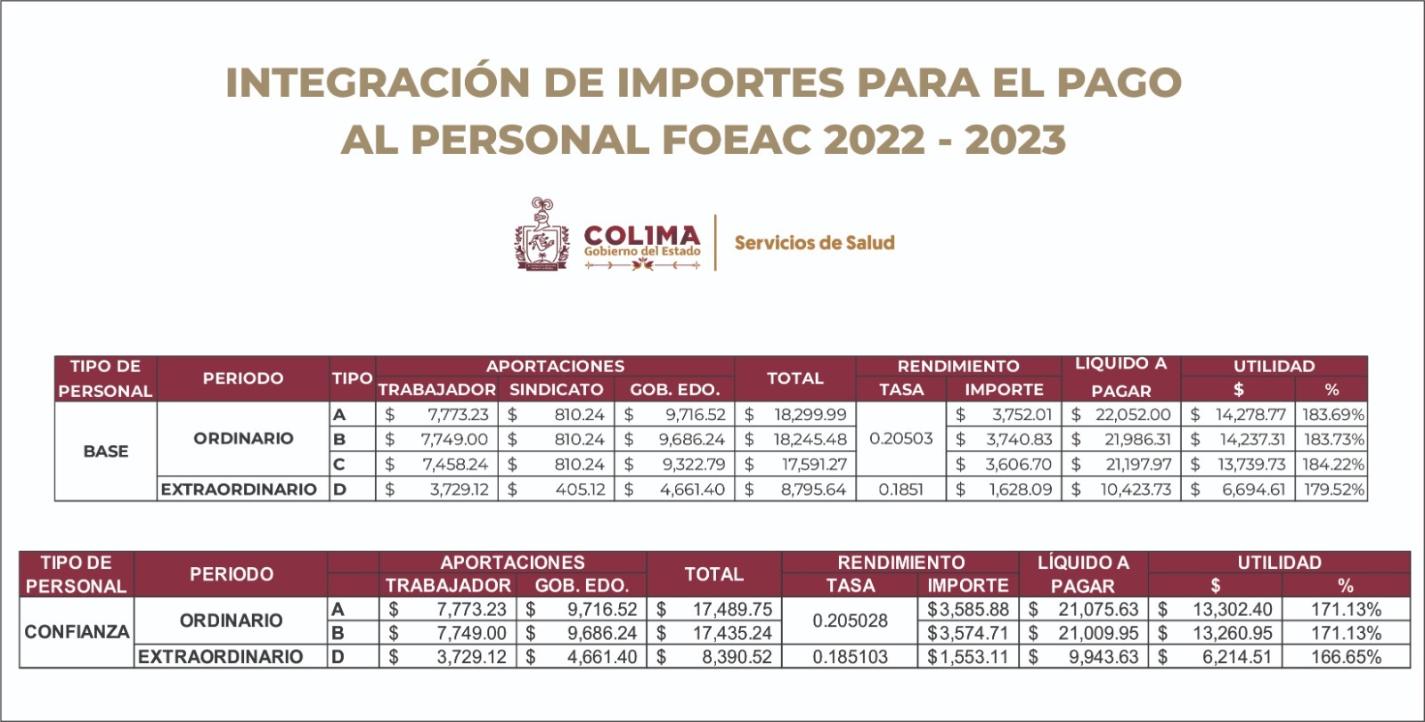 Gobierno de Colima realiza aportación proporcional de pago de FOEAC por $22.7 millones a personal de Salud