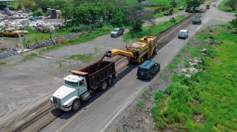 Gobierno del Estado continúa bacheo en la carretera Villa de Álvarez-Minatitlán