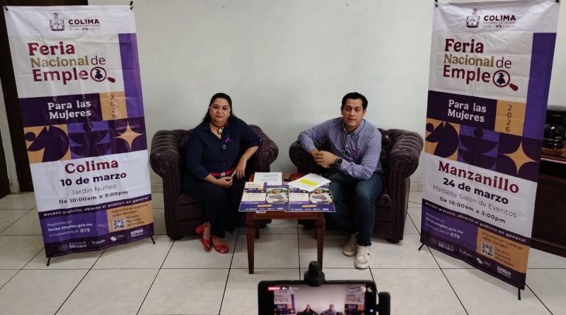 La Subsecretaría del Trabajo de Gobierno del Estado de Colima y el Servicio Nacional de Empleo (SNE) realizarán las Ferias Nacionales de Empleo para las Mujeres 2026, el 10 de marzo en el jardín Núñez de Colima y el 24 de marzo en el salón de eventos Marbella de Manzanillo, de 10:00 a 15:00 horas, donde 65 empresas ofrecerán más de 500 vacantes con contratación inmediata y sueldos de 9 mil a 35 mil pesos mensuales; la convocatoria es para todas las personas interesadas en postularse a una vacante.