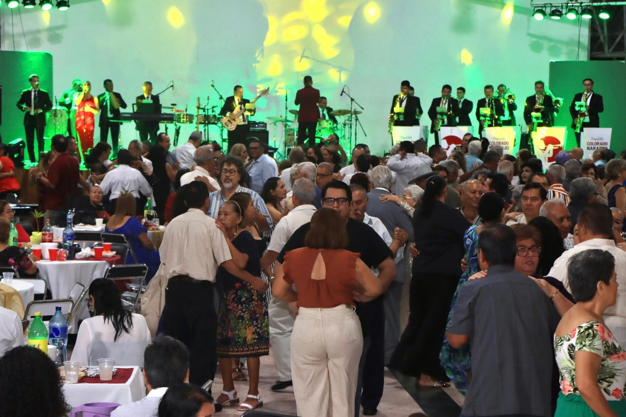 En un ambiente festivo y de camaradería, el DIF Estatal Colima llevó a cabo con éxito y lleno en el Casino de los Burócratas en Villa de Álvarez, el tradicional baile anual ‘Una Cana al Aire’, en el que más de 800 personas adultas mayores disfrutaron de su día social al ritmo de la casi centenaria Orquesta Colorado Naranjo, que interpretó música de variados géneros y de diferentes épocas, como mambos, danzones, chachachá, cumbias, tangos y pasos dobles.