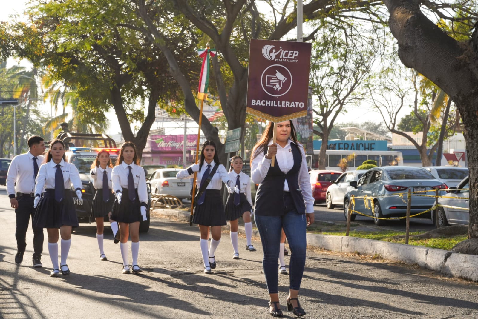 Niñas, niños y juventudes estudiantiles de los niveles primaria, secundaria, bachillerato y licenciatura participaron en la exhibición, que inicio con una marcha del Jardín Principal de Villa de Álvarez a la Unidad Deportiva «Profr. Gil Cabrera Gudiño».