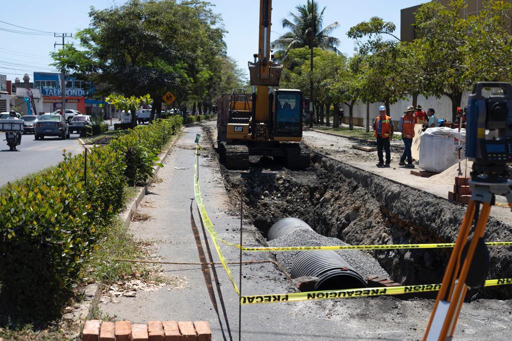 La obra de sustitución del colector de alcantarillado sanitario se desarrolla desde la calle Guayabo hasta el CENDI del Barrio 2 y la construcción de la red de descargas domiciliarias desde la avenida Manglares hasta el CENDI del Barrio 2 en el Valle de las Garzas.