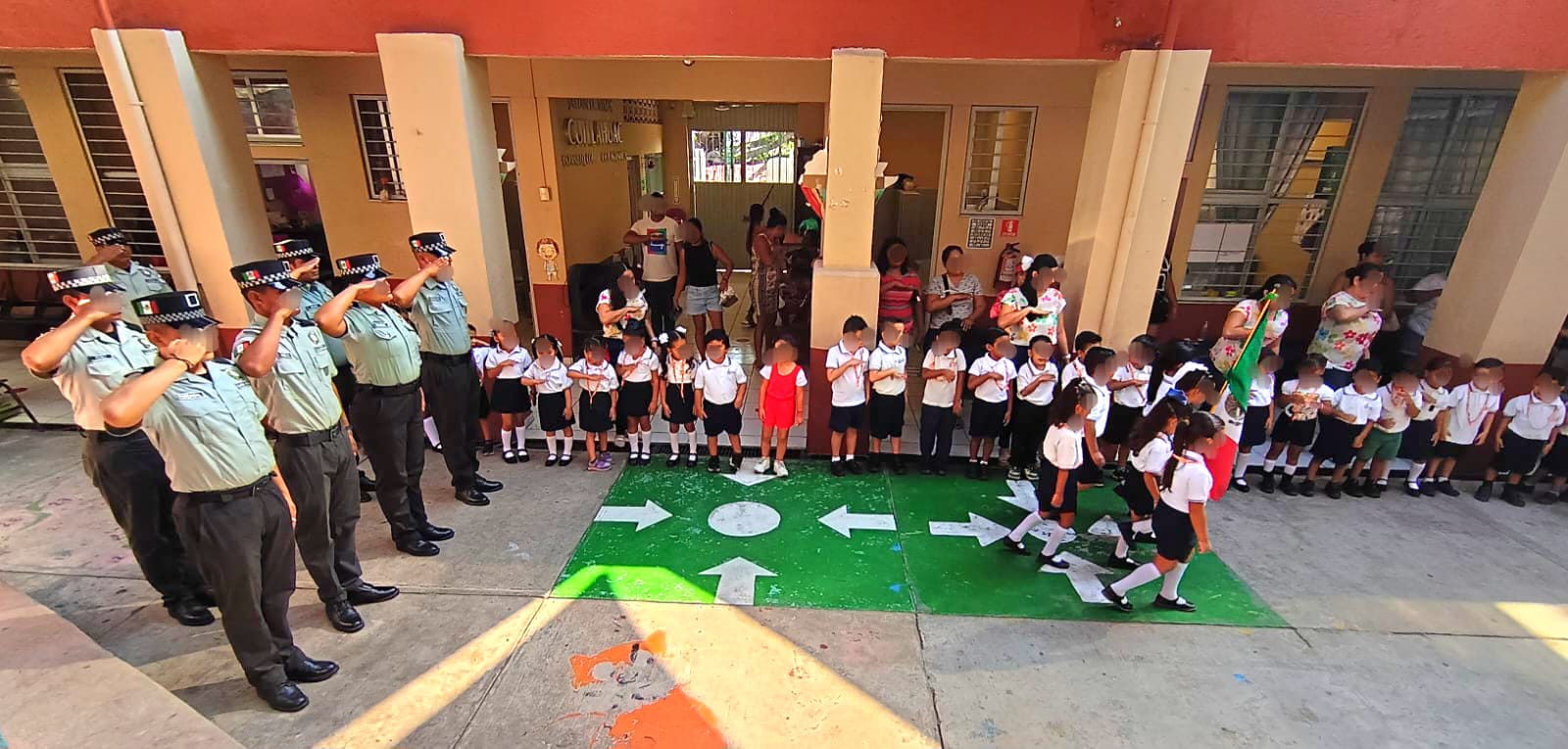En el marco de las acciones de proximidad social y fortalecimiento del vínculo con la ciudadanía, personal de la Guardia Nacional llevó a cabo actos cívicos en diversos planteles educativos del estado de Colima.