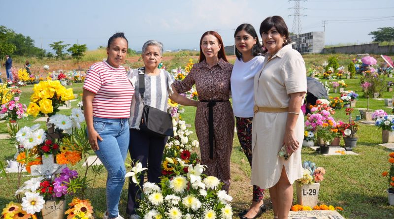 Del mismo modo, Tey Gutiérrez visitó y colocó ofrendas florales en el lugar donde se encuentran los restos de villalvarenses distinguidos e ilustres al interior del panteón Morada de la Paz, con el objetivo de enaltecer y horrar su vida.