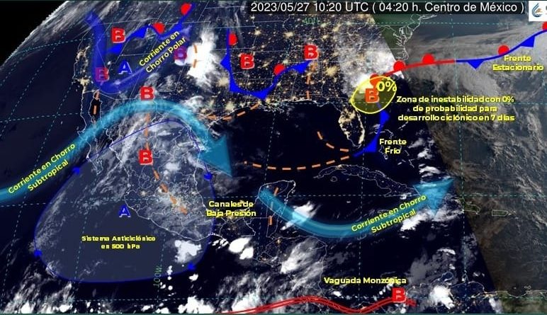 La Comisión Nacional del Agua (Conagua), fuente oficial del Gobierno de México, contempla para hoy lluvias aisladas de 0.1 a 5 milímetros, en Colima, Sonora, Tabasco, Campeche y Yucatán. Respecto a las temperaturas mínimas en el país este día descenderían de 0 a 5°C en las zonas montañosas de Baja California, Chihuahua y Durango.