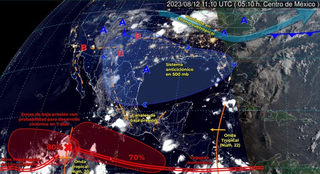 El Servicio Meteorológico Nacional (SMN), fuente oficial del Gobierno de México, pronostica que durante las próximas horas en algunos municipios de Colima se registrarán lluvias fuertes con puntuales muy fuertes de hasta 75 milímetros, al igual que en Sonora, Sinaloa, Chihuahua, Durango, Nayarit y Jalisco.