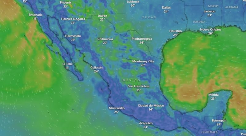 La primera de dichas zonas de baja presión con probabilidad para desarrollo ciclónico que se localiza al sur de la Península de Yucatán, lo que mantendrá el temporal de lluvias puntuales torrenciales en zonas de Oaxaca y Guerrero, y puntuales intensas en Quintana Roo, Yucatán, Campeche y Chiapas, además de rachas fuertes de viento y posible formación de trombas marinas en costas de Yucatán, Campeche y Guerrero. Este fenómeno ha incrementado