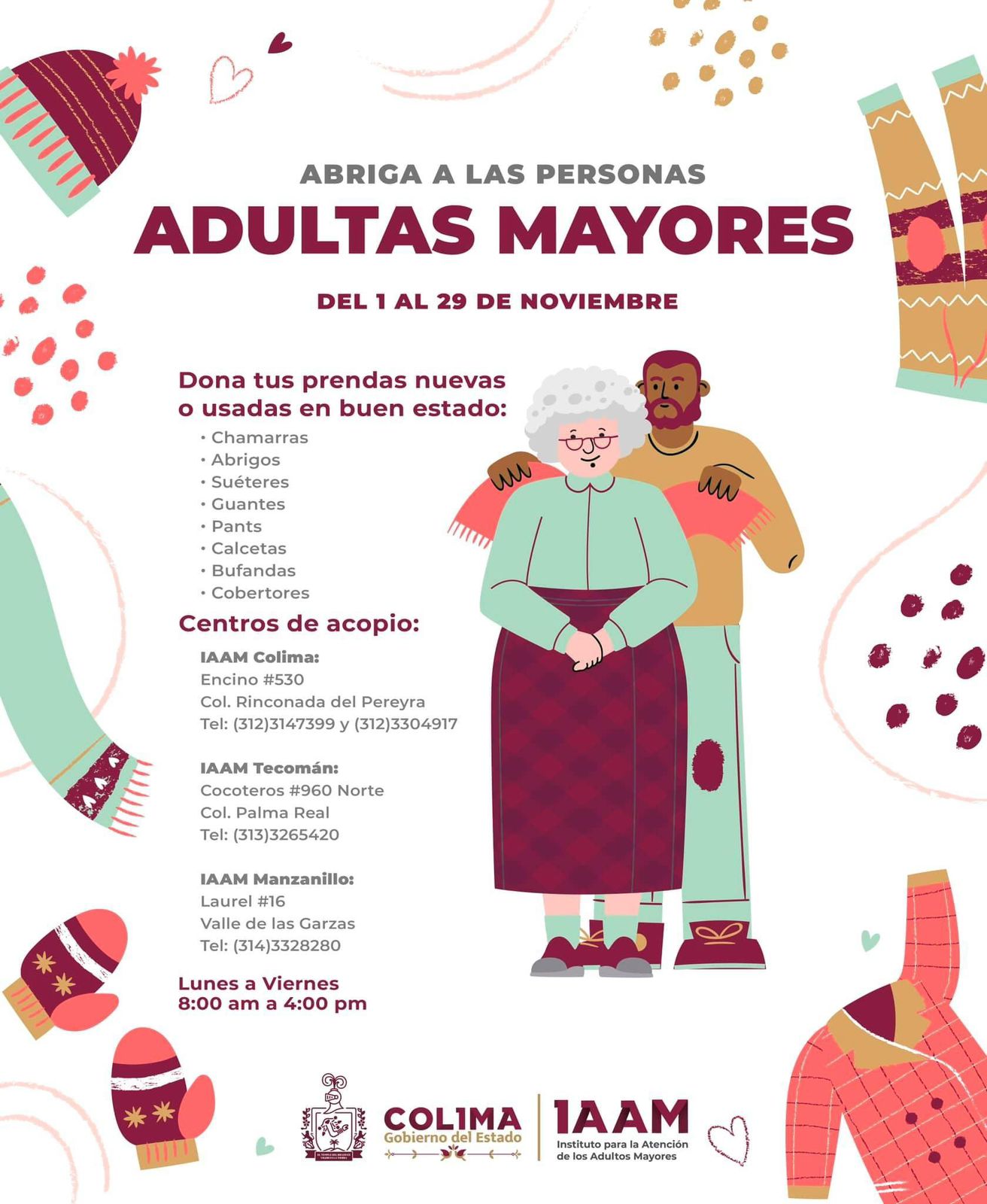 El Instituto para la Atención de los Adultos Mayores (IAAM) del Gobierno del Estado de Colima continúa la campaña ‘Abriga a las Personas Adultas Mayores’, durante este mes de noviembre, por lo que aún quedan dos semanas para donar ropa abrigadora para obsequiar a personas en condición de vulnerabilidad.