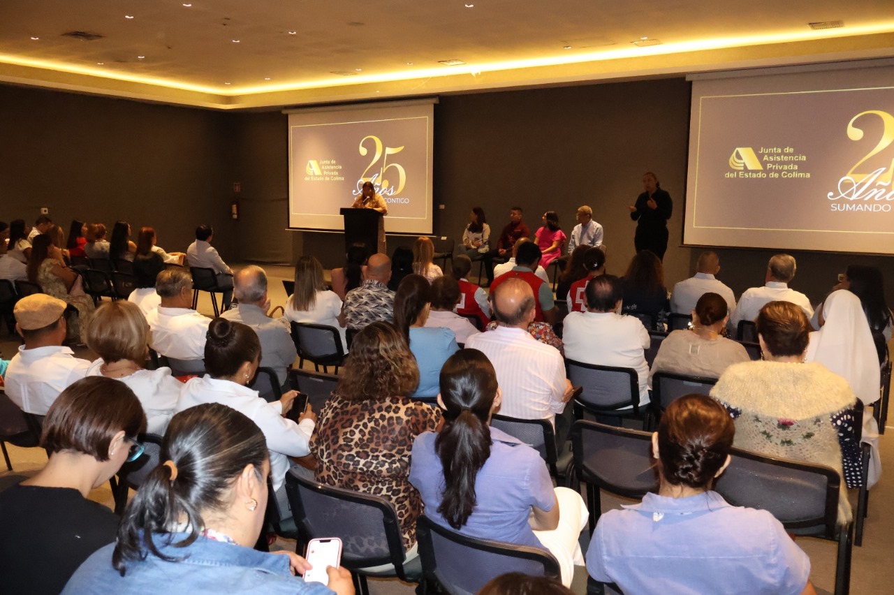 El informe de actividades se efectuó este viernes en el Centro de Convenciones del Complejo Administrativo del Gobierno del Estado de Colima, en el marco de la celebración por el vigésimo-quinto aniversario de la JAP, institución con amplio reconocimiento estatal y nacional, por la noble labor que a diario realiza a favor de las y los colimenses que más lo necesitan.