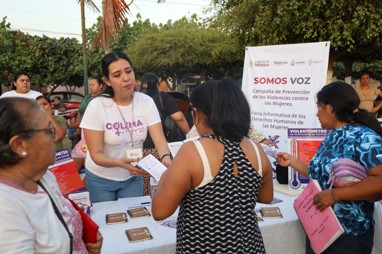 El Gobierno del Estado de Colima, a través del Instituto Colimense de las Mujeres (ICM), en coordinación con el Ayuntamiento de Coquimatlán, realizó la tarde de este miércoles la Feria Informativa y de Servicios “Somos Voz” en la colonia Las Moras, donde más de cien personas asistieron para conocer los servicios de prevención y atención de la violencia que ofrece la administración pública, así como los emprendimientos económicos de las mujeres de la comunidad.