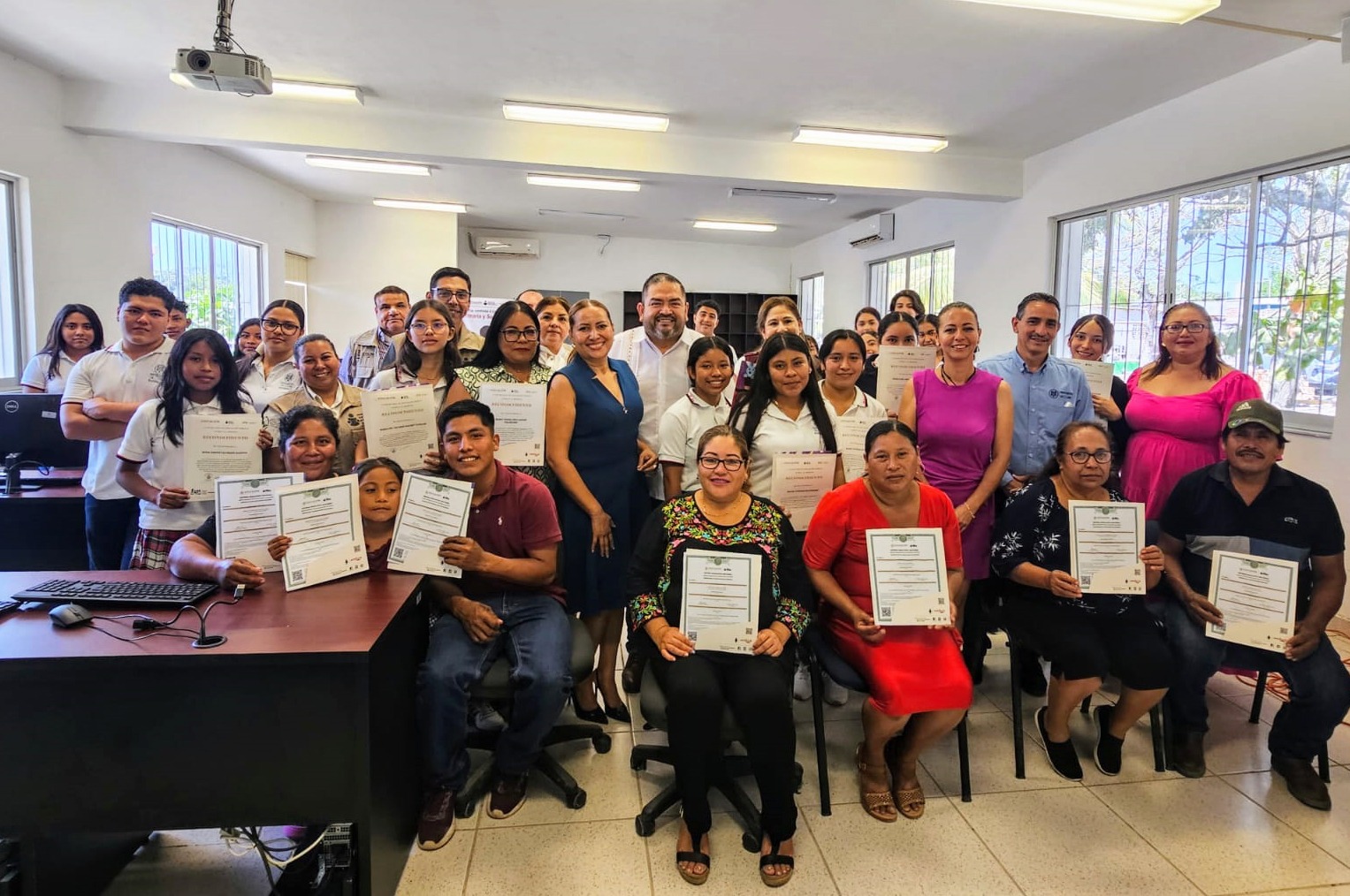 Se otorgaron dos certificados de primaria y seis de secundaria a jóvenes y adultos que culminaron exitosamente sus estudios básicos. Este logro es posible gracias al compromiso y dedicación de estudiantes de bachillerato, quienes participaron como promotoras y promotores del aprendizaje dentro del Movimiento Nacional por la Alfabetización y la Educación (Monae), el cual próximamente llevará por nombre ‘Alfabetización por el Bienestar Compartido’ (ABC).