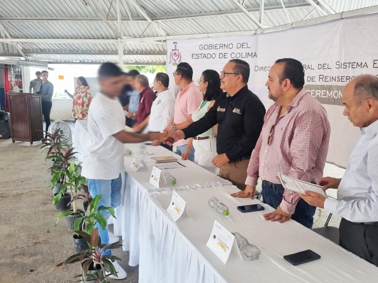 En la explanada del Centro de Reinserción Social varonil (Cereso) de Colima, se llevó a cabo la ceremonia de clausura del ciclo escolar 2023-2024, en la que el Instituto Estatal de Educación para Adultos (IEEA) otorgó siete certificados -seis de secundaria y uno de primaria- a personas privadas de su libertad (PPL), quienes se encuentran en dicho inmueble.