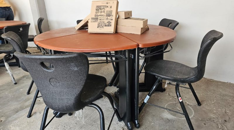 Asimismo, se dotó de mobiliario para el nuevo espacio: un anaquel para resguardo de libros y dos módulos circulares de estudio con divisiones individuales y sus respectivas sillas, diseñados para facilitar el aprendizaje autónomo en un ambiente digno.