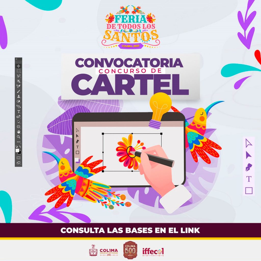 El Instituto de Fomento de Ferias y Exposiciones del Estado de Colima (Iffecol) presentó este miércoles la convocatoria para que estudiantes y/o profesionales en diseño gráfico, artes plásticas, ilustración, fotografía, comunicación, producción gráfica o disciplinas afines, participen en el concurso del cartel conmemorativo de la Feria de Todos los Santos Colima 2023, a partir de hoy y hasta el miércoles 20 de septiembre.