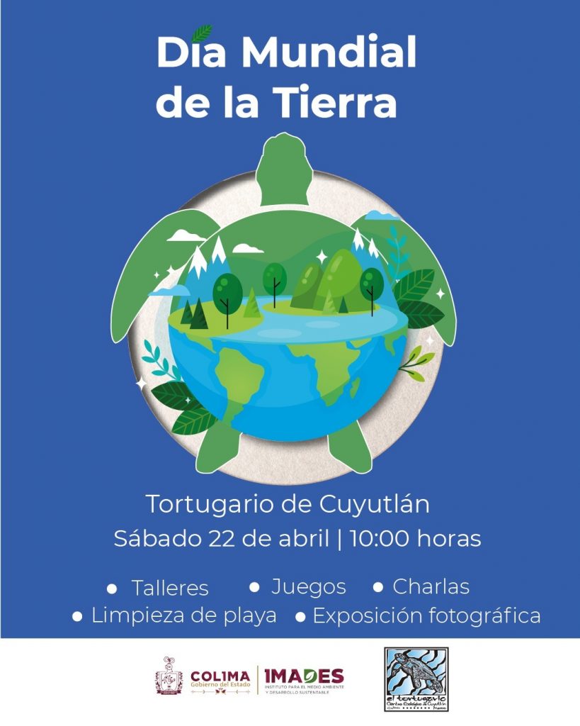 El Gobierno del Estado de Colima, a través del Instituto para el Medio Ambiente y Desarrollo Sustentable (Imades), invita a la población a participar en las diversas actividades para conmemorar el Día Mundial de la Tierra este sábado 22 de abril, en el tortugario de Cuyutlán, en el municipio de Armería.