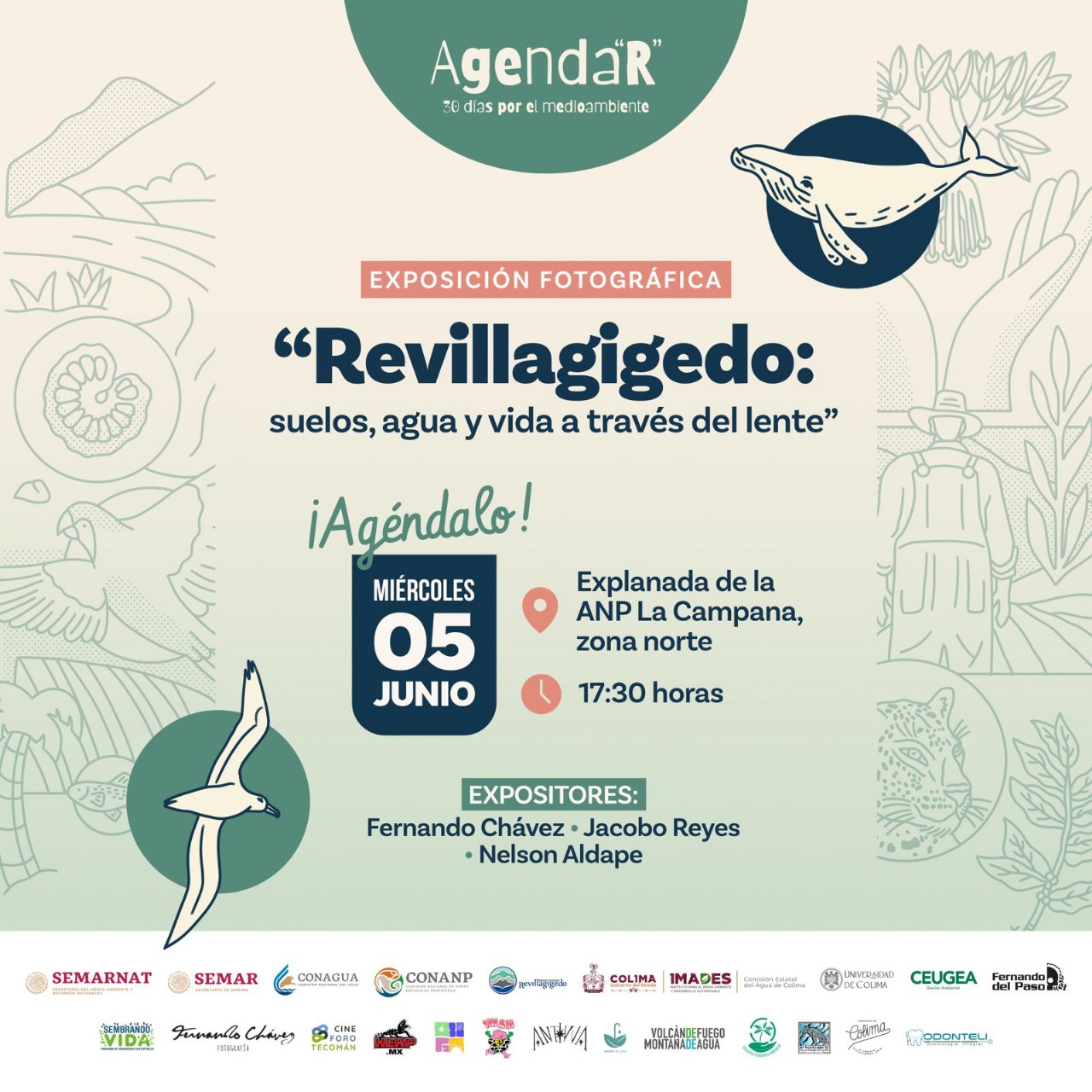 El Instituto para el Medio Ambiente y Desarrollo Sustentable (Imades) del Estado de Colima, invita a toda la población a la inauguración de la exposición fotográfica ‘Revillagigedo: suelos, agua y vida a través del lente’, este miércoles 5 de junio a las 5:30 de la tarde, en la entrada norte del Área Natural Protegida “La Campana”, que es el nuevo ingreso por el Tercer Anillo Periférico.
