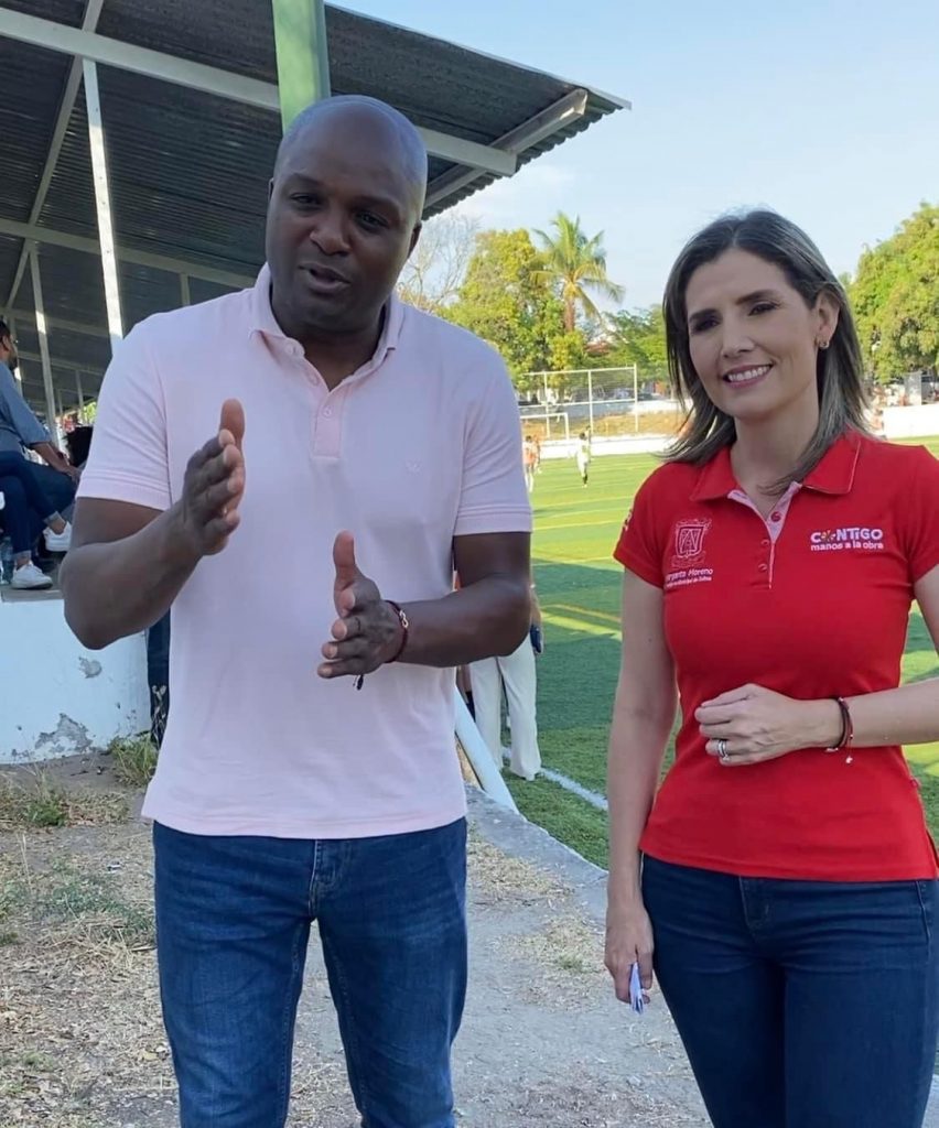 *Margarita Moreno y Aquivaldo Mosquera, director técnico de Alebrijes de Oaxaca FC, hacen equipo para ofrecer alternativas de crecimiento a deportistas de Colima.