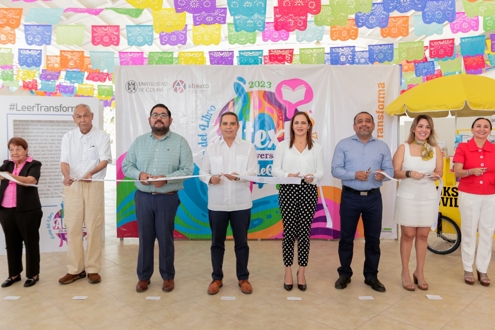 En otro momento, reconoció el trabajo del personal universitario que hizo realidad esta feria del libro, particularmente a las direcciones generales de Servicios Universitarios y de Publicaciones, por las gestiones para traer un gran número de libros de editoriales locales, nacionales e internacionales y por hacer posible que vengan a Colima varios autores de libros, conferencistas y grupos musicales; “esta feria se convierte así en una iniciativa transversal institucional, pues en cada campus y cada rincón de la Universidad habrá una expresión en el marco de Altexto”.