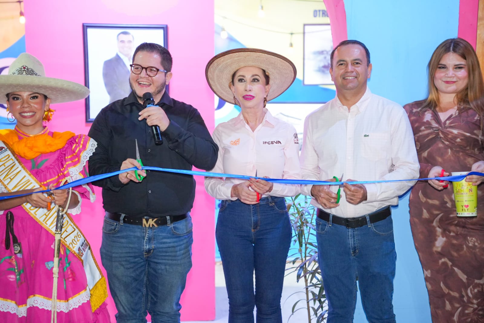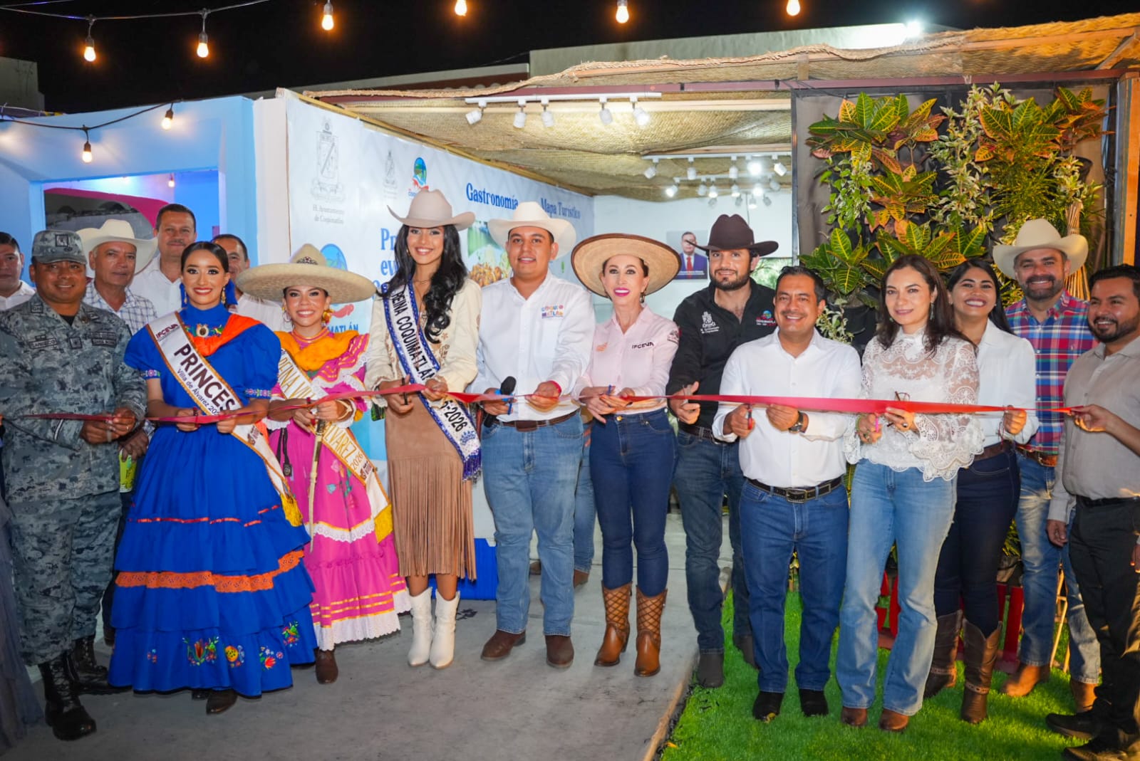 Villa de Álvarez, Colima.- La Presidenta Tey Gutiérrez Andrade inauguró, junto con alcaldes y representantes de algunos de ellos, el área de los stands de los municipios en el Recinto Ferial de los Festejos Charrotaurinos Villa de Álvarez 2026.