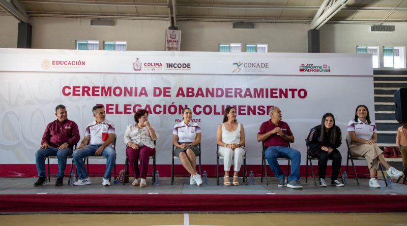 La Gobernadora de Colima, Indira Vizcaíno Silva, abanderó en el auditorio “Porfirio Gutiérrez Romero” de la Unidad Deportiva José María y Morelos, a la delegación colimense que representará a la entidad con 359 deportistas en 24 disciplinas deportivas en su participación en los Nacionales Conade 2023, a efectuarse en Tabasco, Aguascalientes, Morelos, Nayarit y Jalisco, del 19 de mayo al 25 de julio.