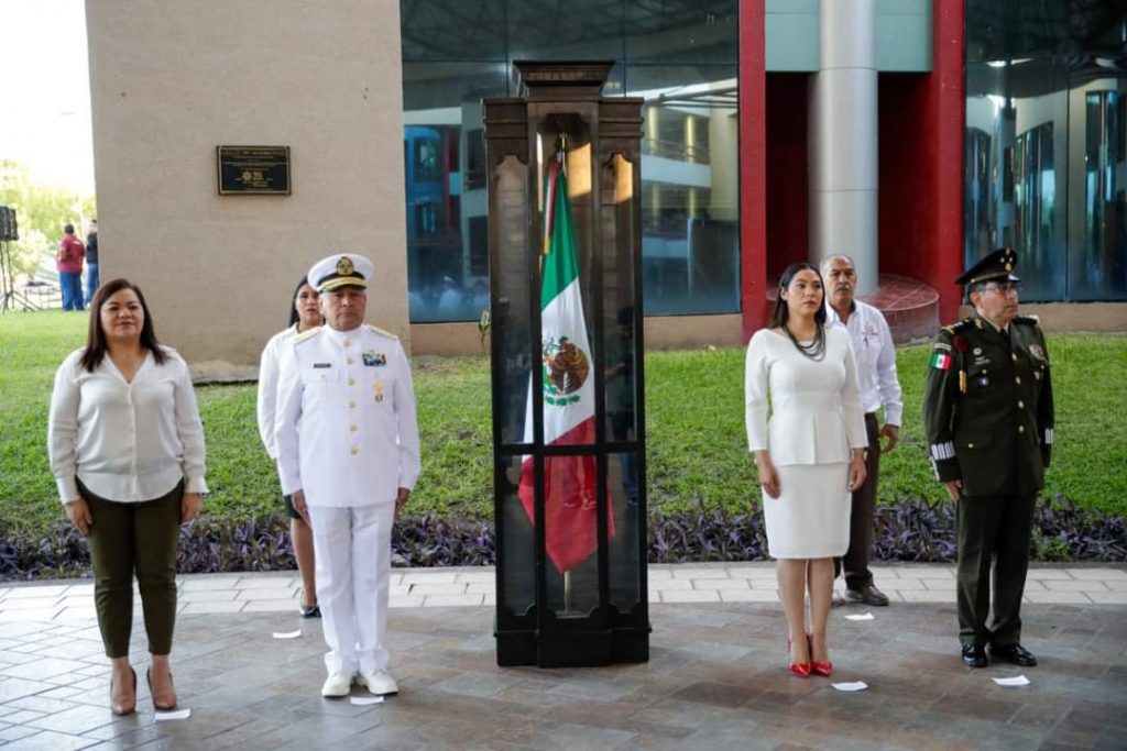«La bandera nacional es punto de encuentro entre todas y todos los mexicanos y por consecuencia de las y los colimenses. Constituye por excelencia uno de los principales factores de unidad nacional, una figura que encarna la tierra en que vivimos y que representamos en esta gran diversidad social que hay en México y Colima». refirió Indira Vizcaíno.