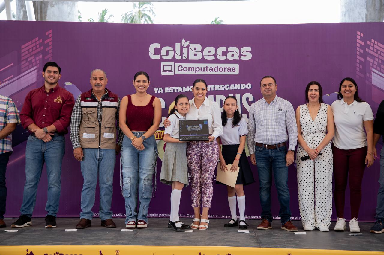 Este jueves, la gobernadora de Colima, Indira Vizcaíno Silva, siguió entregando laptops gratuitas a más de 1,980 estudiantes de primer grado de secundarias públicas en Tecomán, municipio donde cerca de 2050 alumnas y alumnas de ese nivel educativo recibirán el programa ColiBecas Computadoras, con inversión superior a 16 millones de pesos.