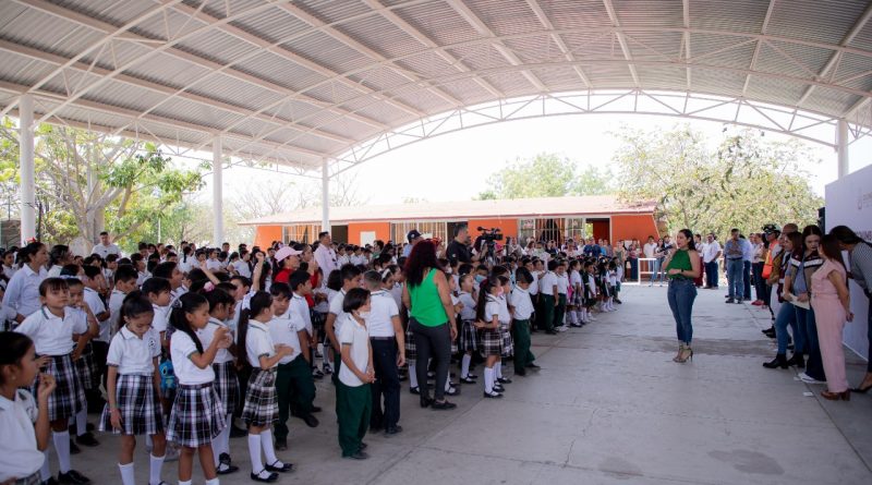 Indira Vizcaíno entrega techumbre en primaria ‘Griselda Álvarez’, en Villa de Álvarez