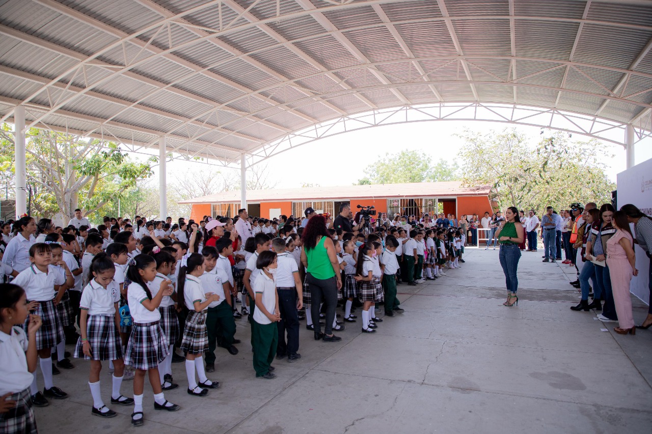 Con inversión superior a un millón 600 mil pesos, ésta es una más de las #ObrasQueTransforman, la cual incluyó la construcción de la cubierta de la plaza cívica, colocación de piso en un aula, rehabilitación de tres postes de luz exterior e instalación de tres lámparas nuevas tipo punta de poste y tres sensores automáticos para su encendido.
