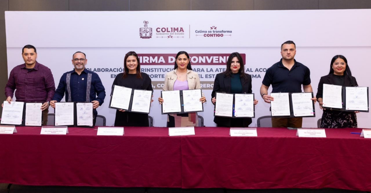 La gobernadora Indira Vizcaíno Silva firmó este martes un convenio de colaboración para atender el acoso sexual en el transporte público, donde participan Fiscalía General del Estado (FGE) y el Gobierno del Estado de Colima a través de sus secretarías de Seguridad Pública y de Infraestructura, Desarrollo Urbano y Movilidad, Subsecretaría de Movilidad, Instituto Colimense de las Mujeres y el Centro de Coordinación, Comando, Control, Comunicaciones, Cómputo e Inteligencia (C5i), entre otras instituciones.