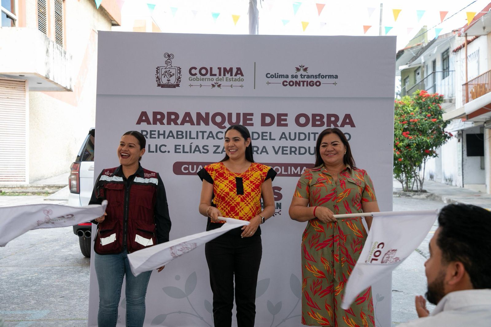 Al seguir su agenda de trabajo la tarde de este martes, la gobernadora Indira Vizcaíno Silva dio el banderazo de arranque a la rehabilitación integral del auditorio municipal de Cuauhtémoc ‘Lic. Elías Zamora Verduzco’, una más de las #ObrasQueTransforman, en la que se invierten 29.2 millones de pesos de contraprestaciones generadas por la concesión para la ampliación del tramo carretero Armería-Colima, que incluye la zona conocida como ‘La Salada’.