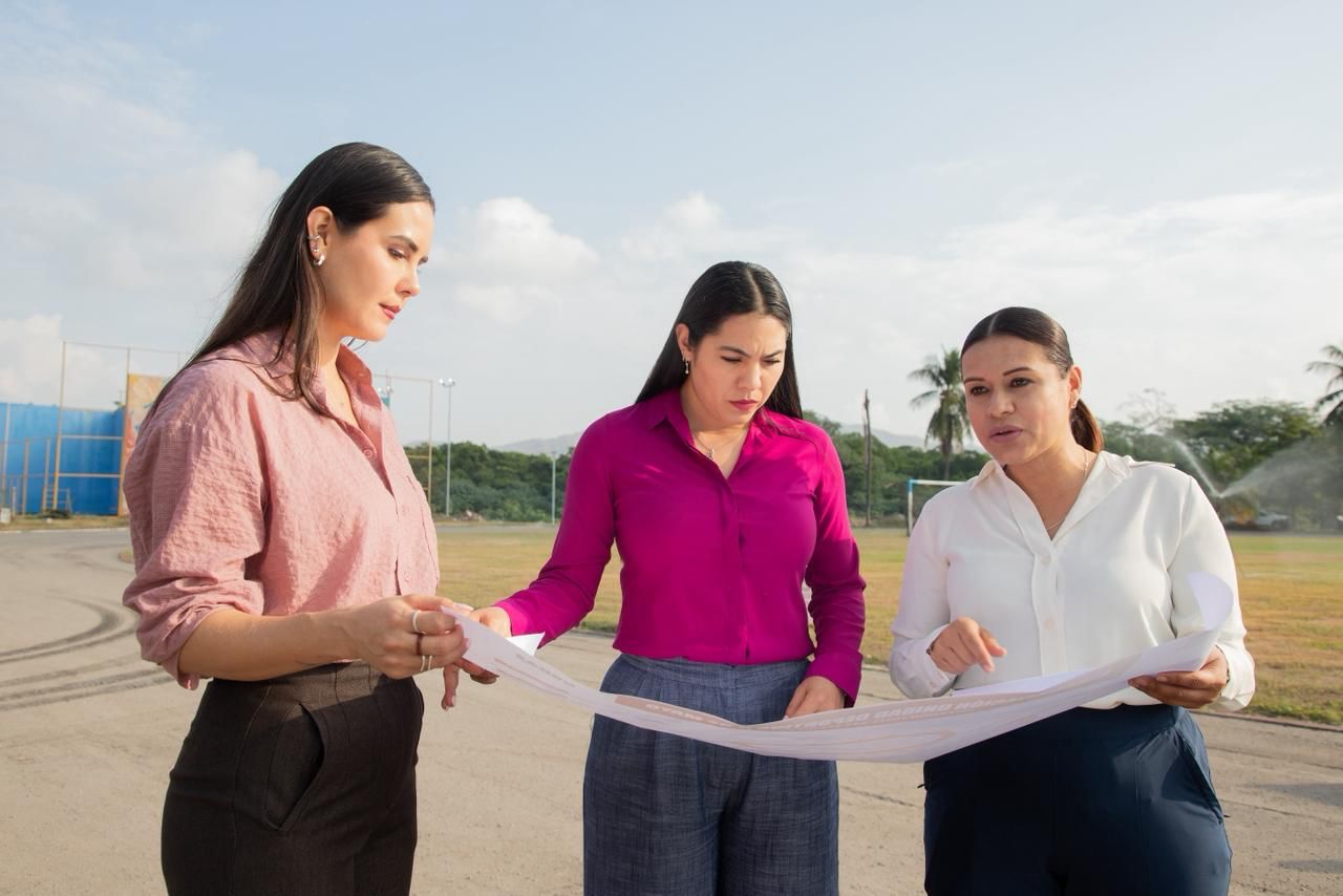 Indira Vizcaíno y Rosi Bayardo supervisan avances en rehabilitación de lUnidad 5 de Mayo en Manzanillo