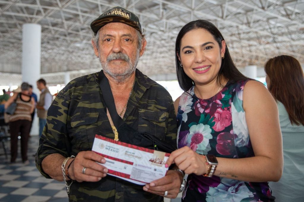 La gobernadora Indira Vizcaíno Silva y Viridiana Valencia Vargas, delegada de Programas para el Bienestar del Gobierno de México, encabezaron la entrega de tarjetas de la Pensión para el Bienestar en los módulos de la Feria de Colima, donde la mandataria destacó la disposición del presidente Andrés Manuel López Obrador para bancarizar esta entrega y evitarles traslados a los operativos de pago cada dos meses que impliquen gastos innecesarios a las personas adultas mayores.