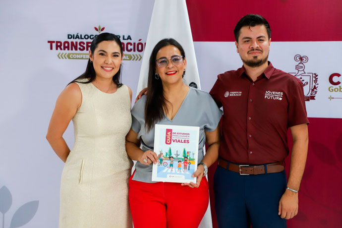 La gobernadora Indira Vizcaíno Silva, acompañada de la subsecretaria de Movilidad (Subsemov), Blanca Livier Rodríguez Osorio, presentó este martes en Diálogos por la Transformación, la nueva guía de estudios para la presentación y aprobación del examen para obtener licencia de conducir en el estado de Colima; “es un examen vanguardista que incorpora elementos en la visión de la movilidad, que pone en el centro la seguridad de las personas, comenzando con las y los peatones”, dijo la mandataria.